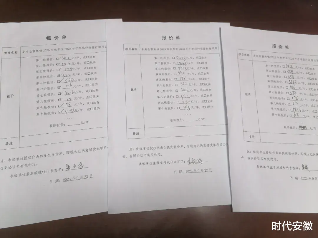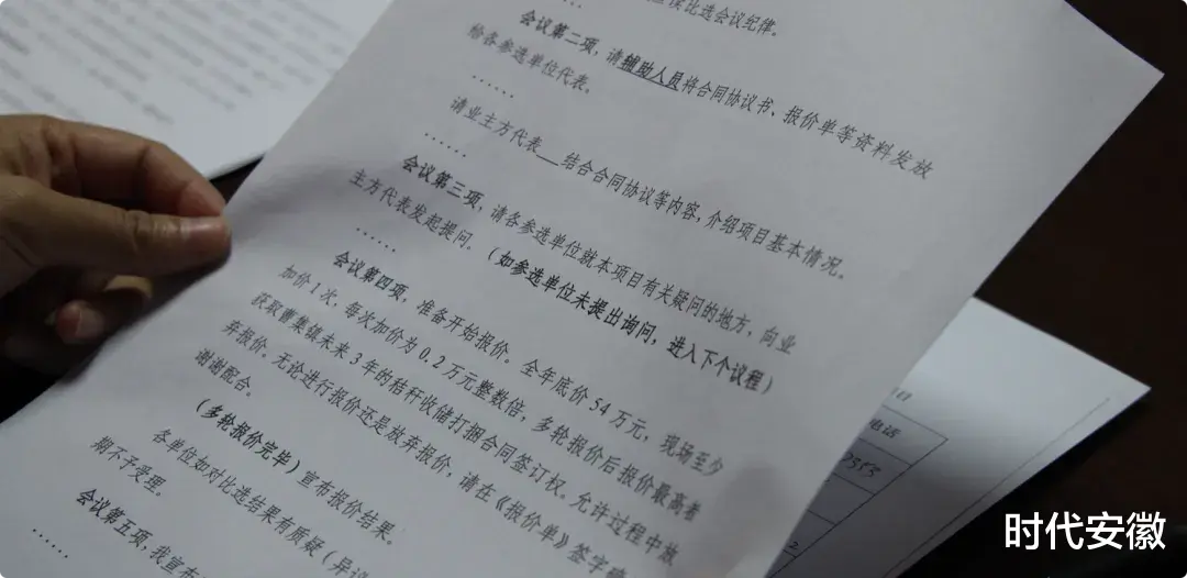 “本次拍租的是曹集镇全域范围内未来三年的秸秆打捆收储权,起拍价54万元,每次加价为0.2万元整数倍。”拍租委托方阜南县和普项目管理有限公司工作人员话音刚落,第一轮报价开始,三人纷纷在报价单上填写竞拍金额。