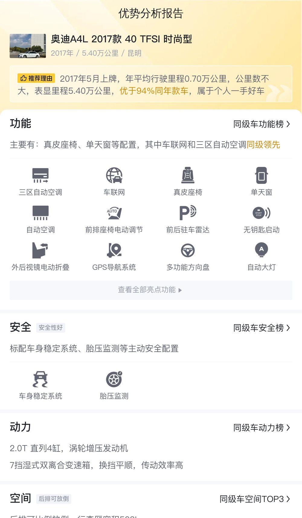 与同级别竞品相比,2017款奥迪A4L 40 TFSI 时尚型有哪些优势和劣势呢?优势方面,首先是品牌影响力。奥迪作为一线豪华品牌,其品牌价值和认知度都比较高。其次是舒适性和配置。A4L的空间表现和配置水平在同级别车型中都处于领先地位,能够提供更舒适的驾乘体验。再次是动力表现。2.0T发动机配合7挡双离合变速箱,能够带来充沛的动力输出和顺畅的换挡体验。劣势方面,主要体现在二手车的车况不确定性上。由于二手车市场鱼龙混杂,车辆历史和车况都存在一定的不确定性,需要买家仔细甄别。此外,豪华品牌的二手车后期维修保养成本相对较高,也是需要考虑的因素。