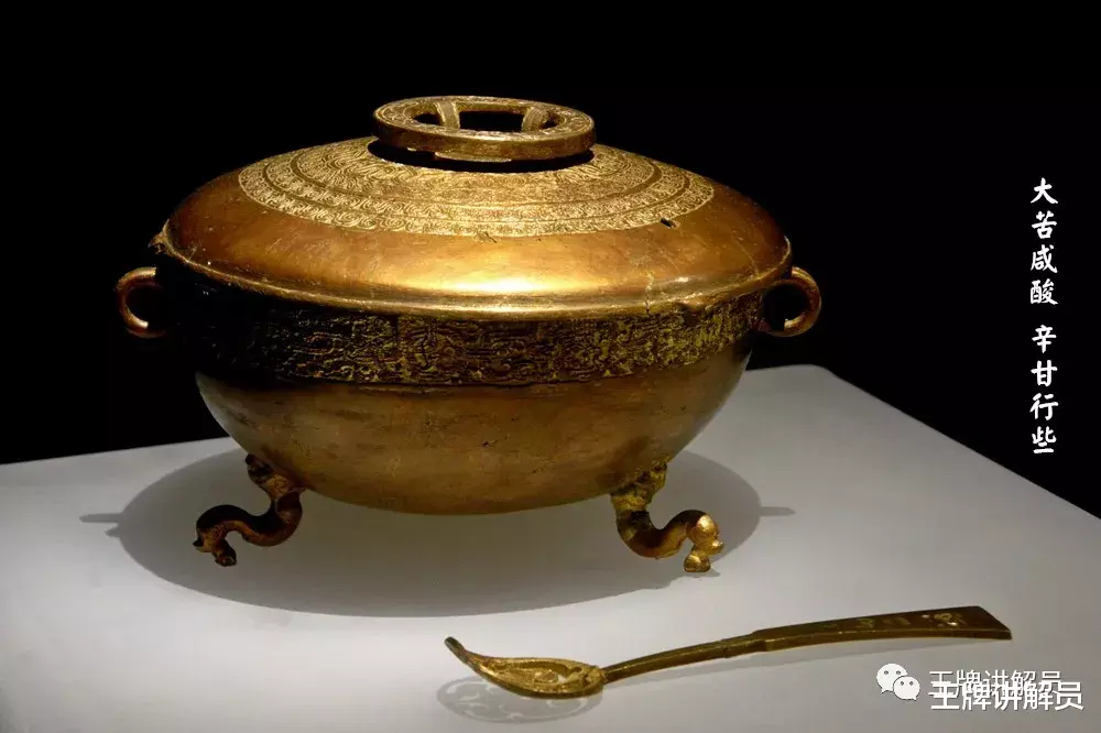 | 金盏和金匕,战国,湖北随州擂鼓墩一号墓出土,湖北省博物馆藏| 配诗选自屈原《招魂》