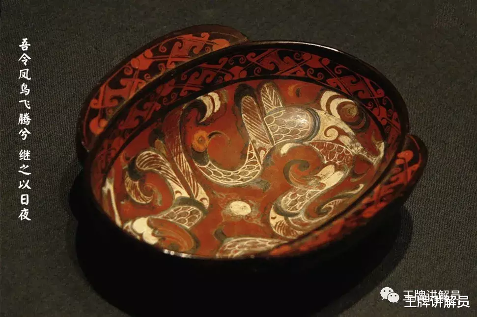 | 彩绘对凤纹漆耳杯,战国,湖北江陵马山一号墓出土,荆州博物馆藏| 配诗选自屈原《离骚》
