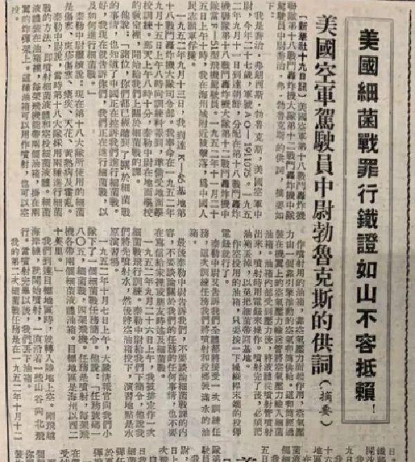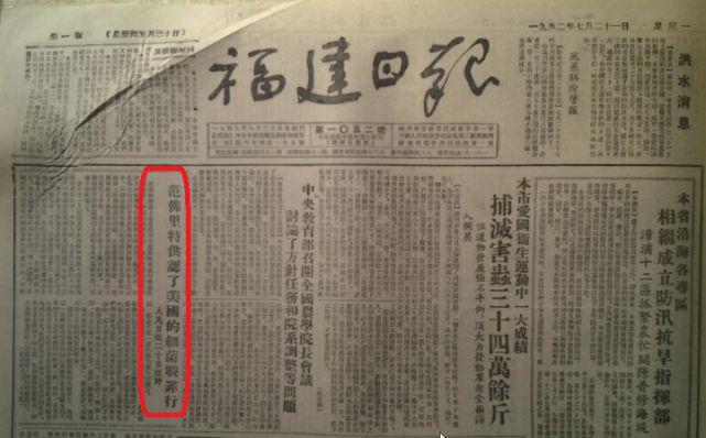 1952年7月21日《福建日报》:范佛里特供认了美国的细菌战罪行