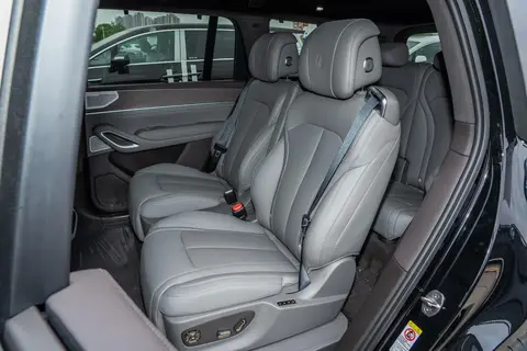 坐进车内,2026 款腾势 N9 采用的是 DiLink 150 座舱,新增了 “金山棕” 内饰配色,给消费者多了些选择。车内的屏幕配置很丰富,有 13.2 英寸的液晶仪表屏、17.3 英寸的中控屏、13.2 英寸的副驾屏幕,还有 50 英寸的 AR-HUD,科技感扑面而来。豪华配置也不少,副驾零重力座椅、二排小桌板、双 50W 手机无线充电、17.3 英寸吸顶屏、车载冰箱这些都有。前排和二排座椅支持加热、通风、按摩,就连第三排座椅也有电动调节和加热功能,不管是坐在前排还是后排,都能舒舒服服的。