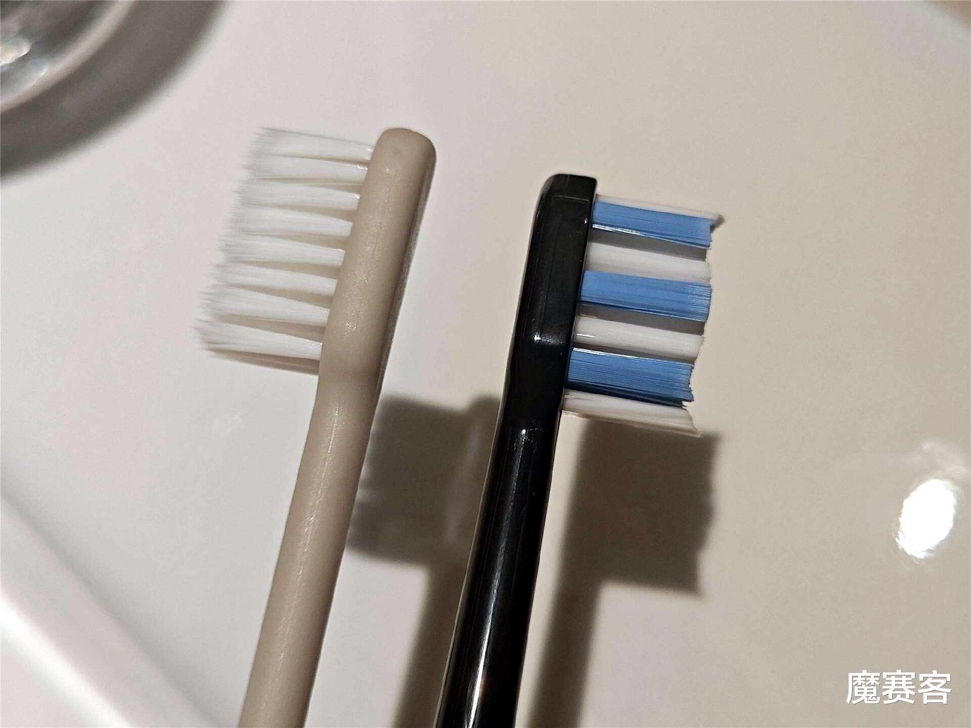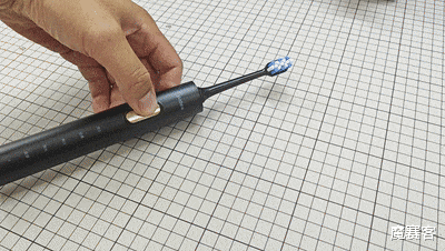 ▲再看刷头,刷头上两端蓝色区域对应的是齿缝和齿窝清洁区,当中蓝色则是齿面清洁区。