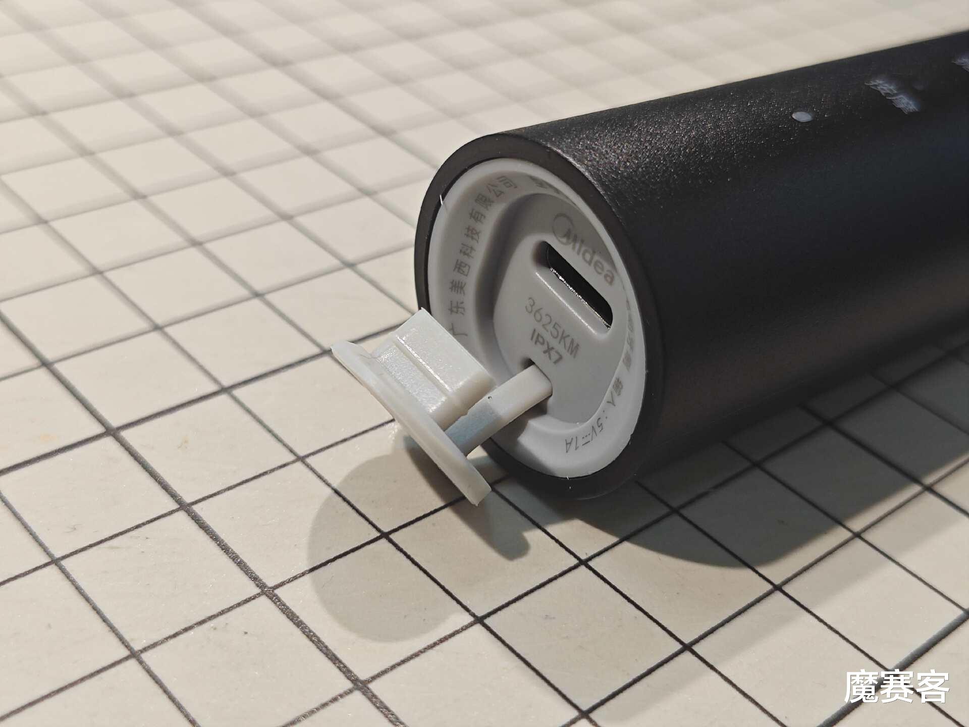 ▲牙刷底部是充电口,同时可以看到IPX7的标识,这意味着这把电动牙刷掉到不超过1米深的水中,只要半小时内拿出来,照样可以正常工作,也可以带到浴室里一边洗澡一边刷牙。如果仅仅是水龙头下清洗,那更是轻松简单了。