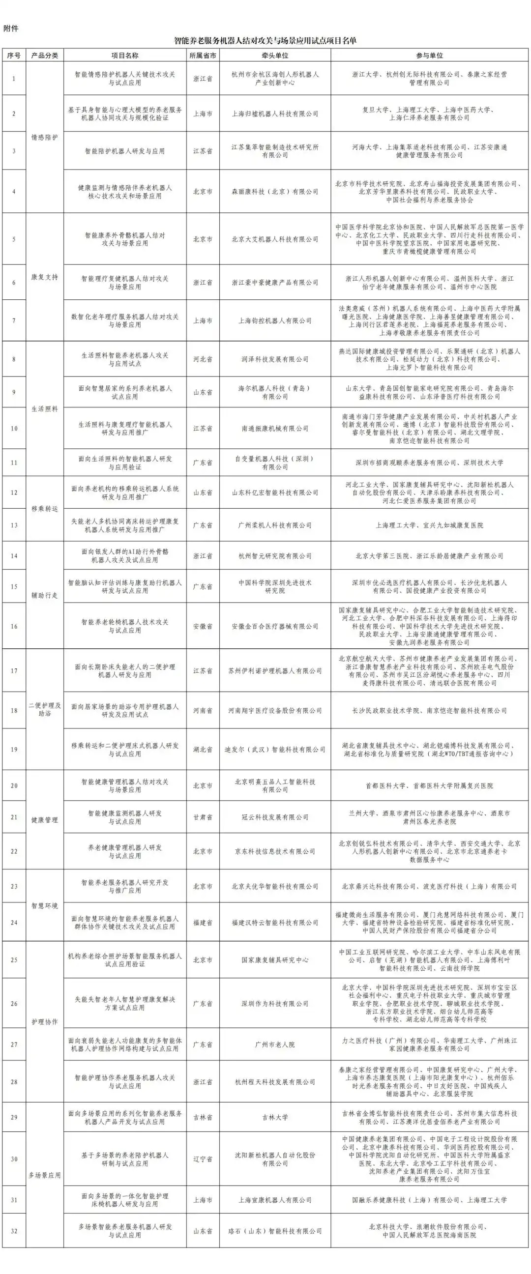 据工业和信息化部官网消息,工业和信息化部、民政部近日联合公布《智能养老服务机器人结对攻关与场景应用试点项目名单》,共计3