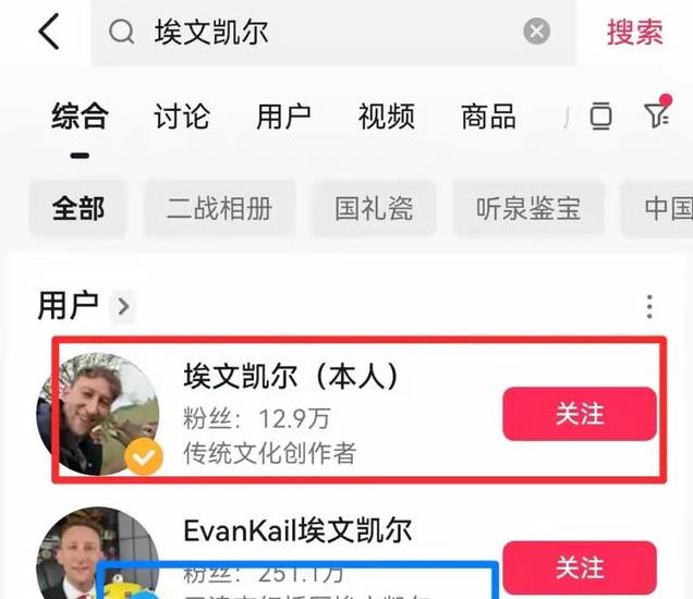 搜索埃文凯尔可以看到,埃文凯尔有两个账号,一个是新账号,另一个是老账号。新账号12万粉丝,老账号有250万粉丝。