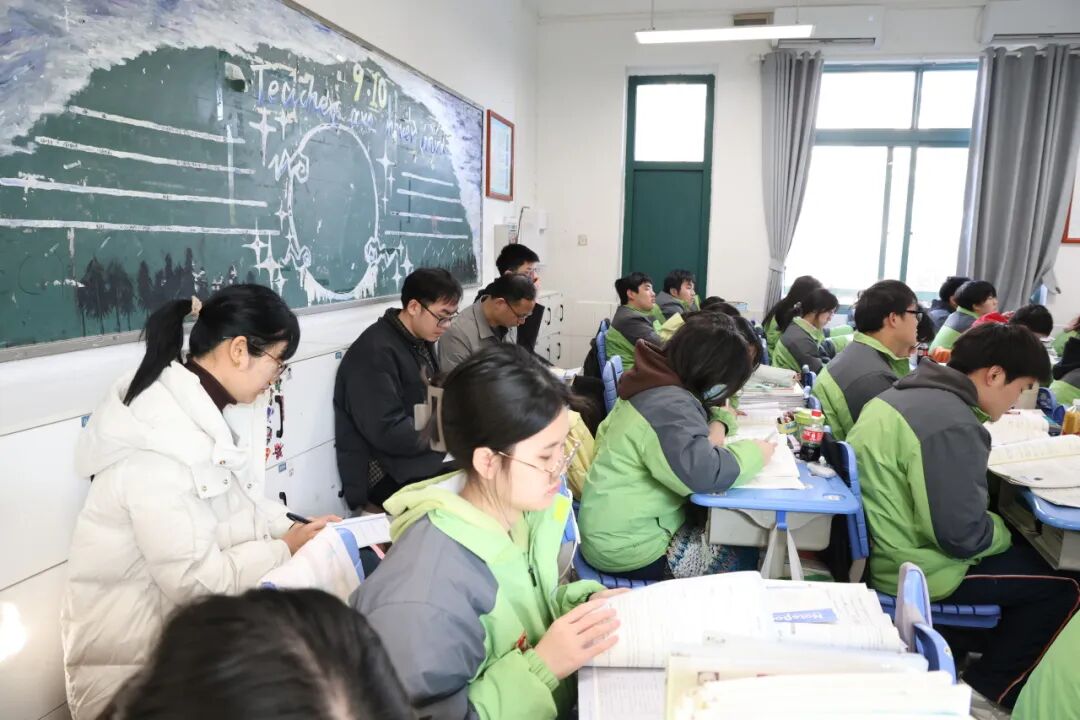 在资料查阅环节,视导组详细查看了高三年级教学计划、集体备课记录、学生作业及考试评价材料,对学校高三教学管理的规范性、系统性给予肯定,并就资源整合与精准教学提出了指导意见。