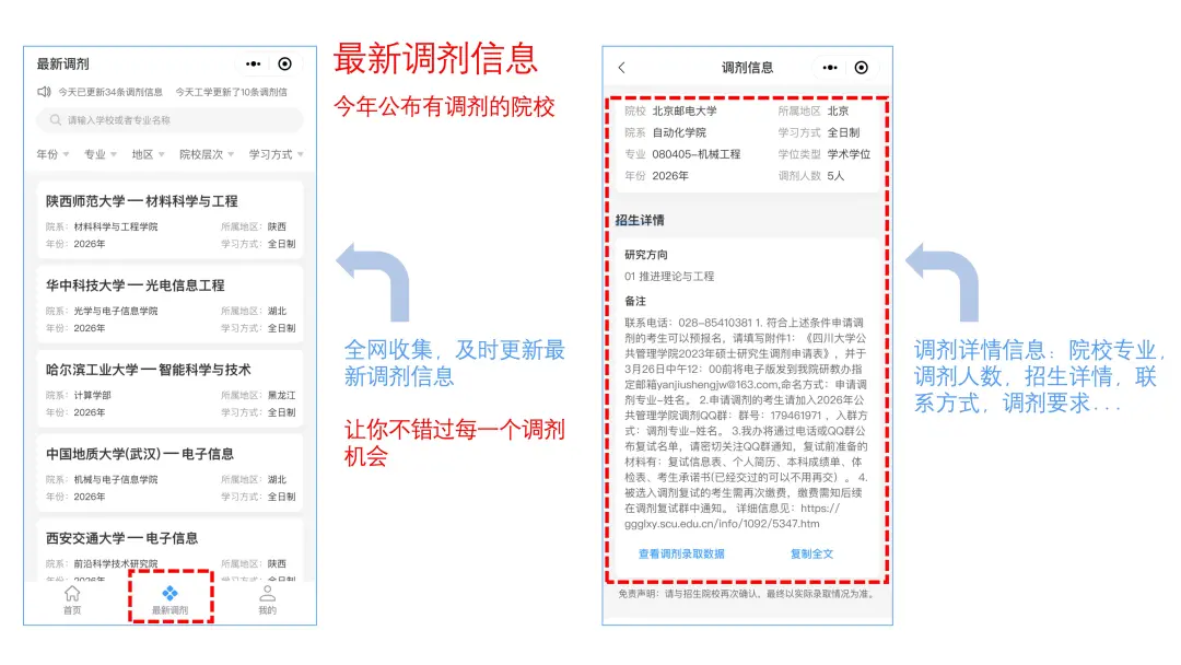 整合了历年调剂公告,并通过多渠道实时抓取、同步更新今年最新的调剂公告,确保信息及时更新。