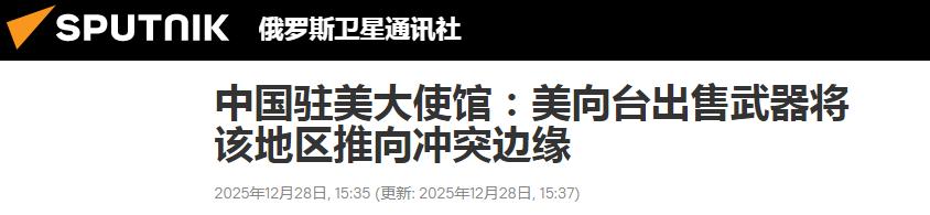 就在舆论发酵的同时,中国驻美大使馆警告:美国向中国台湾出售武器,正在将台岛被推向冲突边缘。
