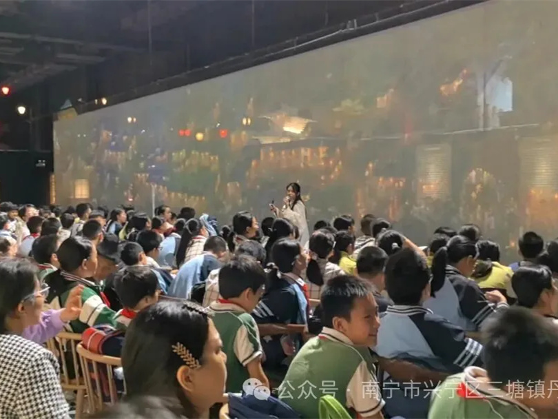 当25.8米的仇英版《清明上河图》在巨幕上“苏醒”:汴河上的商船扬起了帆,拱桥边的小贩举起了货郎担,戏台上的《白兔记》正演到精彩处……研学导师指着画里的细节讲解:“这是明朝的市集,AI让500年前的生活‘活’了过来。”同学们凑在屏幕前数着画里的人物,突然有人喊:“我看到有人在写毛笔字!”传统文化的温度,就这样顺着科技的触角,轻轻落在了孩子们心上。