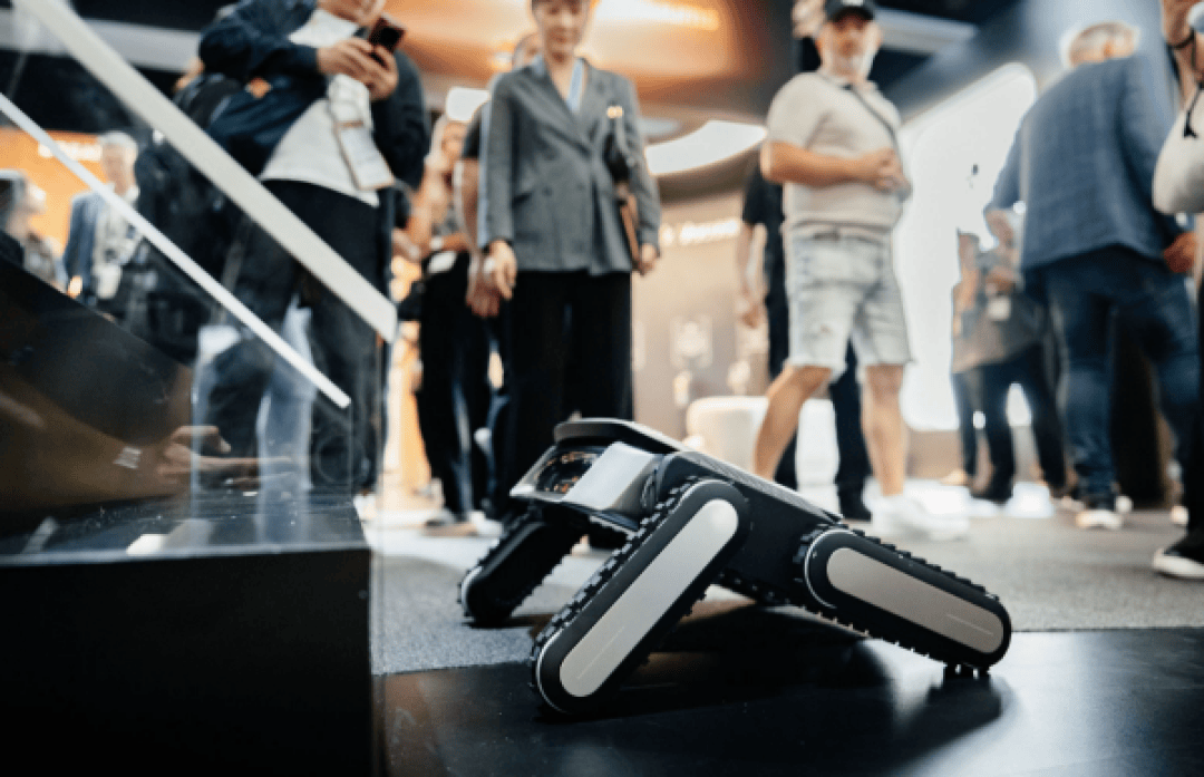 与追觅的“稳健”不同,石头科技展示的 G-Rover 则选择了一条“一体集成式”的技术路径。这是一款轮腿复合式产品,设计灵感似乎源自火星探测车,试图在一个机身上整合移动与越障功能。