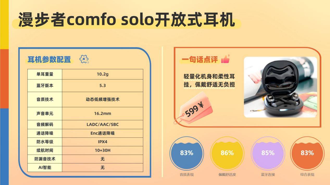 音质方面,Comfo Solo结合动态低频增强技术及创新的空气声腔设计,提供了更宽的频响范围与更强的磁驱动力,声音细节还原清晰,带来真正的高保真聆听感受。该产品已通过HI-Res小金标认证,音质参数相比普通耳机提升约3倍,尤其适合注重音效品质的用户。