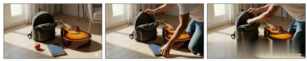 第三,基于“看明白”和“懂规律”,Veo 3还能主动改变视觉世界,具备操控能力。