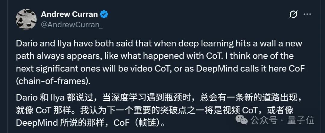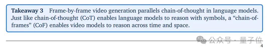 以上观点来自DeepMind最新公开的Veo 3论文,类比语言模型中的CoT,他们首次提出了CoF这一概念。