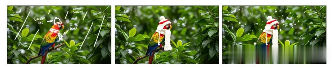比如改改图(给小鸟加上围巾、置身雪景),或者搞3D和模拟(让骑士从朝前变成单膝跪地)。