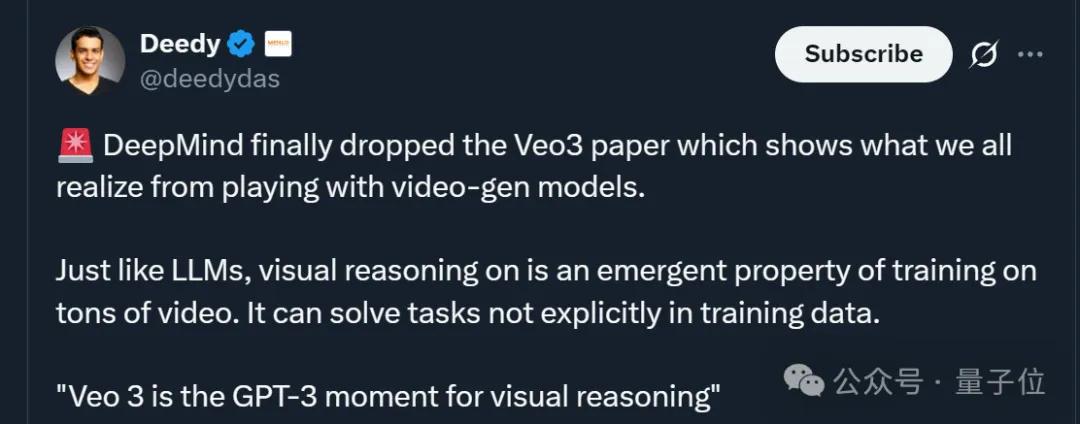 更简单粗暴的总结就是,“Veo 3是视觉推理领域的GPT-3时刻”。