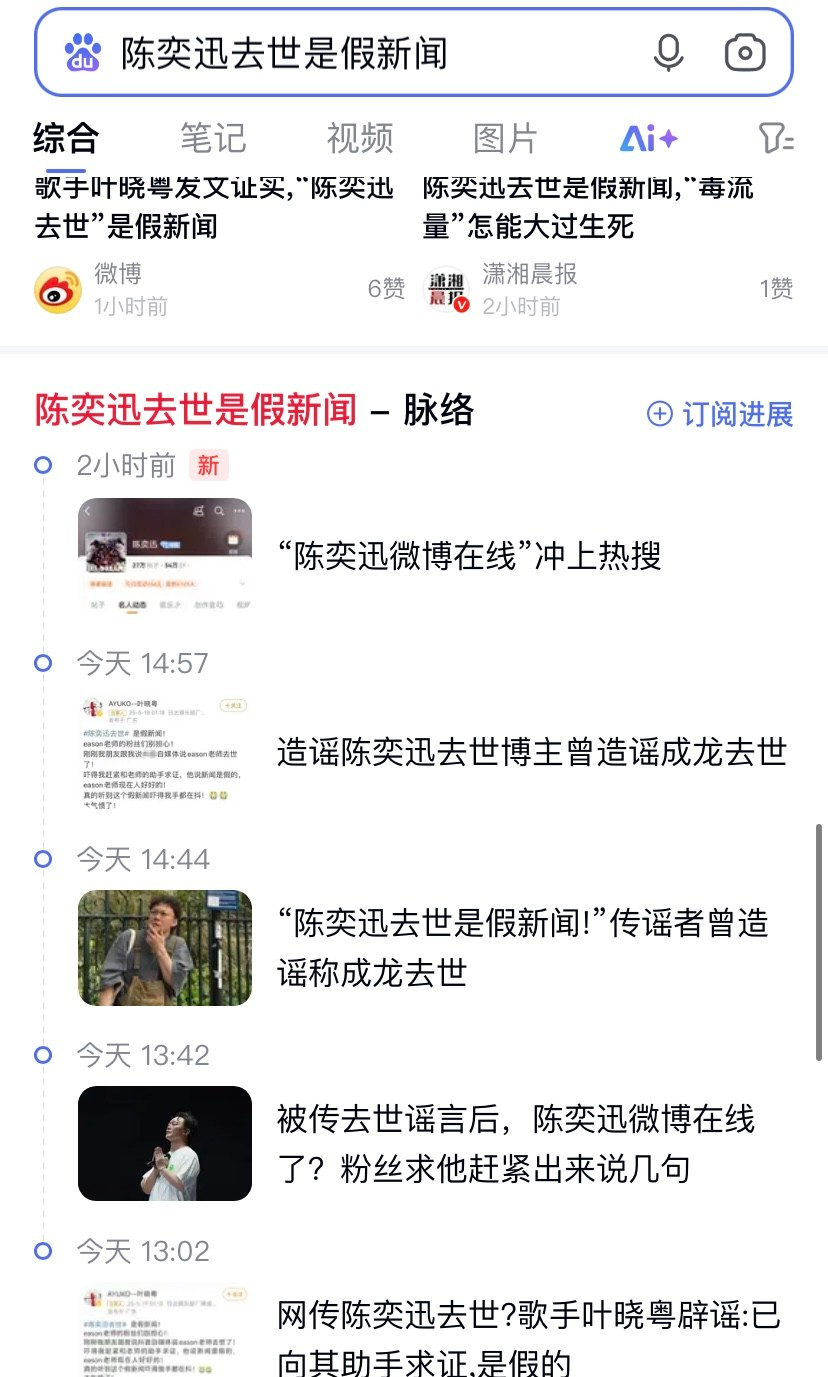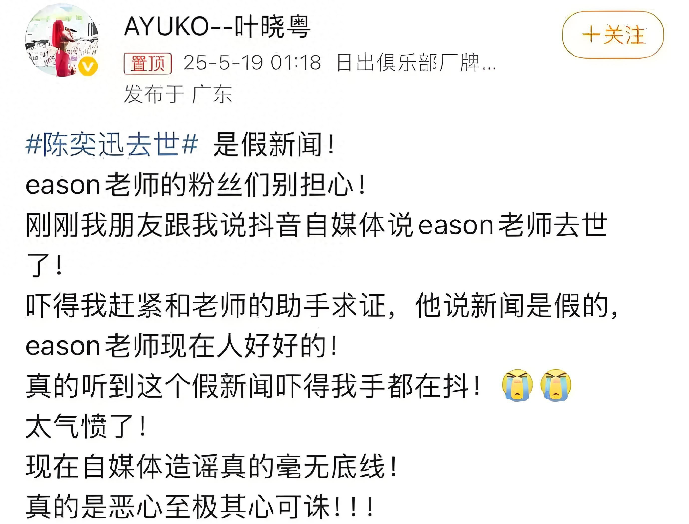 陈奕迅挂了的消息传得跟他的歌曲一样快,粉丝们都吓得差点把手机屏幕给戳破了。