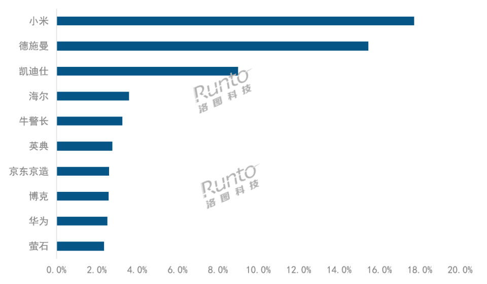 数据来源:洛图科技(RUNTO)线上全渠道监测数据,单位:%