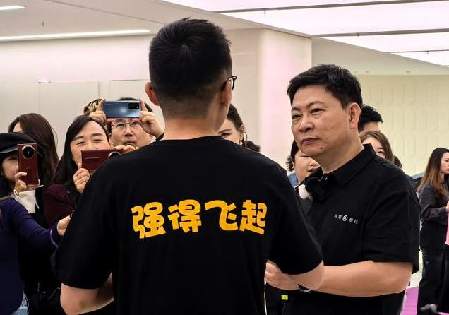 余承东更是亲赴交付现场为车主交车,而车主们更是身穿印着“强的飞起”图案T桖到场支持,太有爱了!