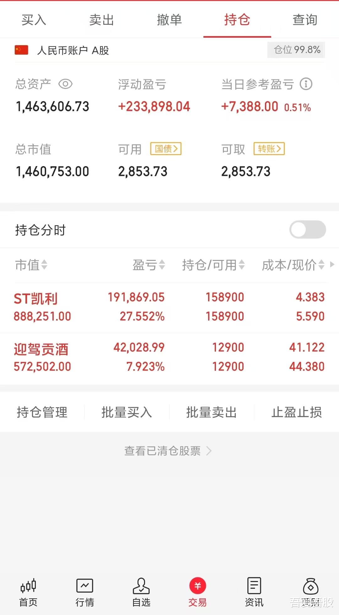 截止到目前为止,持仓市值只有146万多,相比于前段时间的154万,下降了8万左右的幅度,这个回撤幅度还是相当大的。主要的原因就是ST凯利持续性的回调导致的。