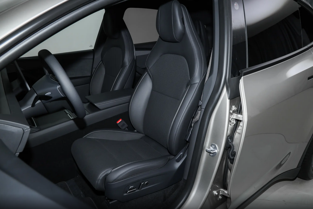 舒适性方面,特斯拉Model Y L并不像看见的这么毛坯,全系标配可电动调节的仿皮座椅,六区均支持加热功能,前两排还多了通风,照顾到全家人的用车需求,炎热夏季前两排乘客长途出行也不闷热,舒适性相对较好。特斯拉Model Y L座椅填充软硬适中,对身体支持性不错,高个子人坐在特斯拉Model Y L的前两排能自由伸展,但到第三排不仅坐垫长度不够,就连头部空间也很一般,说到这儿,很难不让人怀疑,特斯拉Model Y L是为了六座而六座,如果是冲着六座承载力入手特斯拉Model Y L的话,只能说四个字,大可不必。