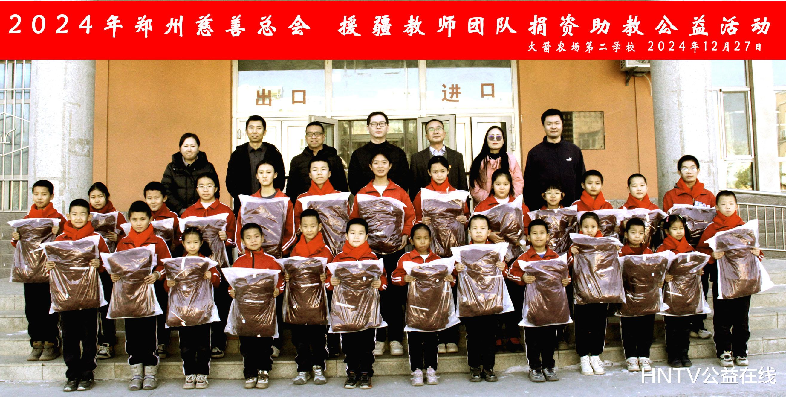 2024年的寒冬岁末,郑州慈善总会善水慈善基金牵手爱心企业(郑州原寸服饰有限公司)联合援疆支教教师一同走进新疆兵团第十三师火箭农场第二学校,将26套保暖的冲锋衣和爱心织女团亲手织的红围巾送到孩子们手上,让孩子们感受到了来自河南的浓浓关爱与温暖。