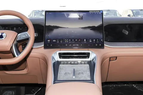 坐进车内,首先感觉是豪华感很足。我试驾的尊越型配备了 NAPPA 真皮座椅,摸上去柔软细腻,前中排还有通风、加热和 10 点式按摩功能,长时间开车也不容易累。内饰有两种风格可选,我那款是搭配了天然浅黛真木饰板和高定奢享绒面顶棚,质感很不错,没有廉价感。科技配置方面,车内屏幕特别丰富,有 13.2 英寸液晶仪表屏、50 英寸 AR-HUD、17.3 英寸中控屏幕、13.2 英寸副驾屏幕,后排还有 17.3 英寸 2.5K 超清吸顶屏。中控屏操作流畅,搭配 4nm 旗舰芯片,切换界面时几乎没有延迟。后排的吸顶屏很受家里孩子喜欢,平时出行能看动画片,长途坐车也不无聊。还有帝瓦雷全景声场音响,支持杜比全景声,而且是同级少有的升降音响,配合车辆的静谧空间,播放音乐时效果特别好,就像在私人音乐厅一样。我试驾时放了首经典老歌,音质清晰,细节还原得很到位,同行的朋友都夸音质好。