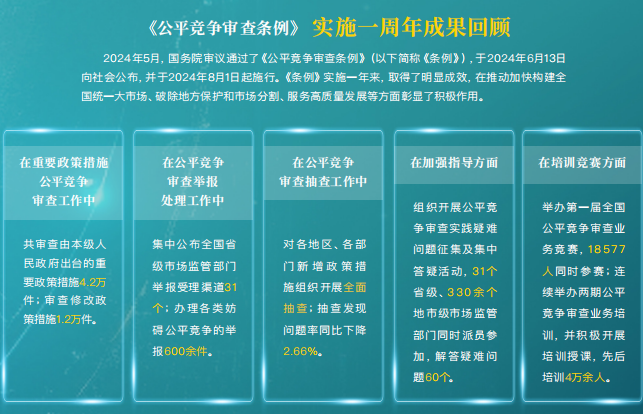 今年,市场监管总局在强化竞争政策的基础地位,持续建设公平竞争的市场环境方面持续发力,出台了《公平竞争审查条例实施办法》,把审查标准细化到66项,进一步增强了制度刚性约束,发布了免罚清单,既体现了加强执法,又坚持柔性治理,形成宽严相济的监管生态,显著改善了市场环境。