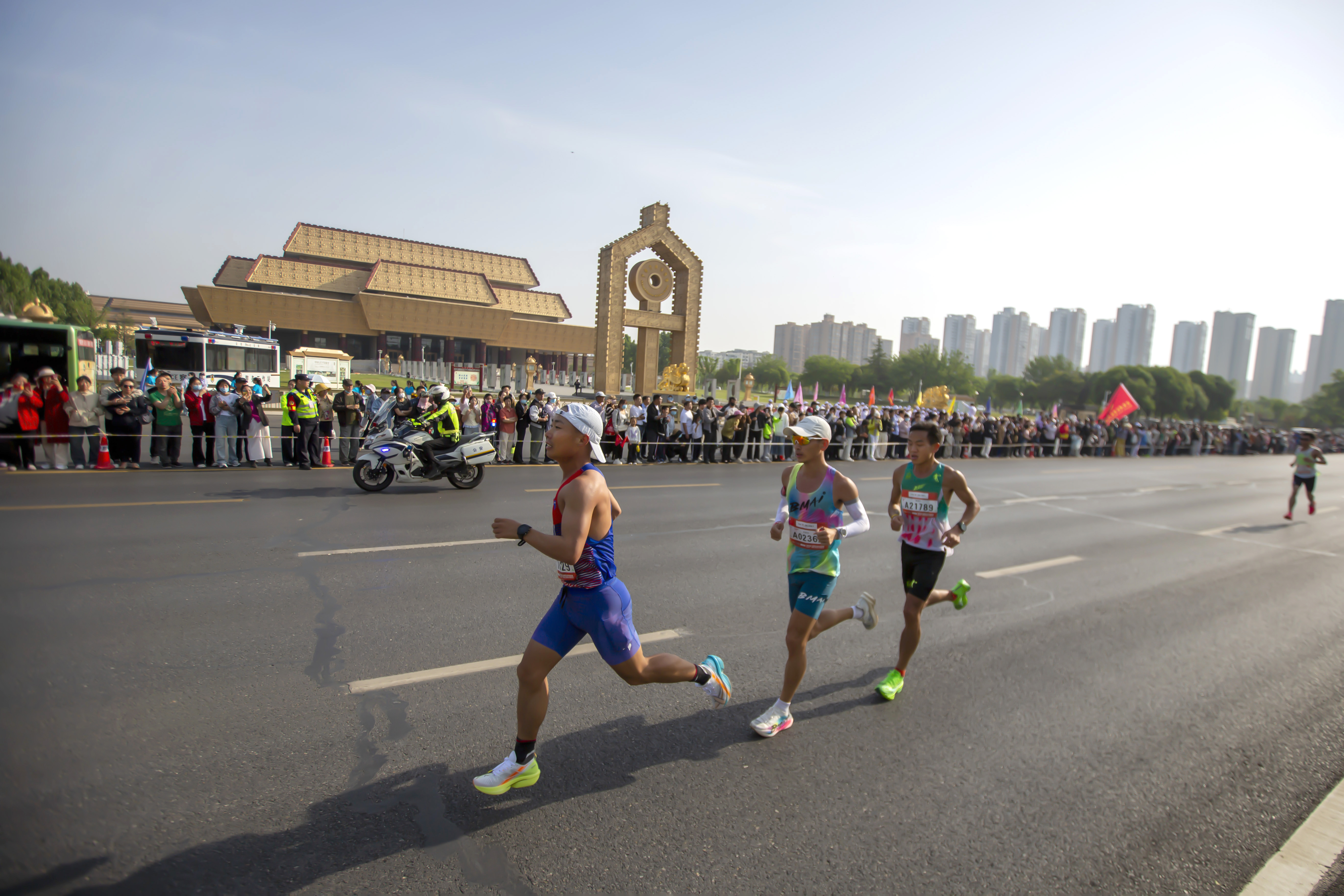 2025年4月26日,中华字都——河南省安阳市中国文字博物馆,参赛选手正在极速通过宽敞的人民大道。(毕兴世 摄)