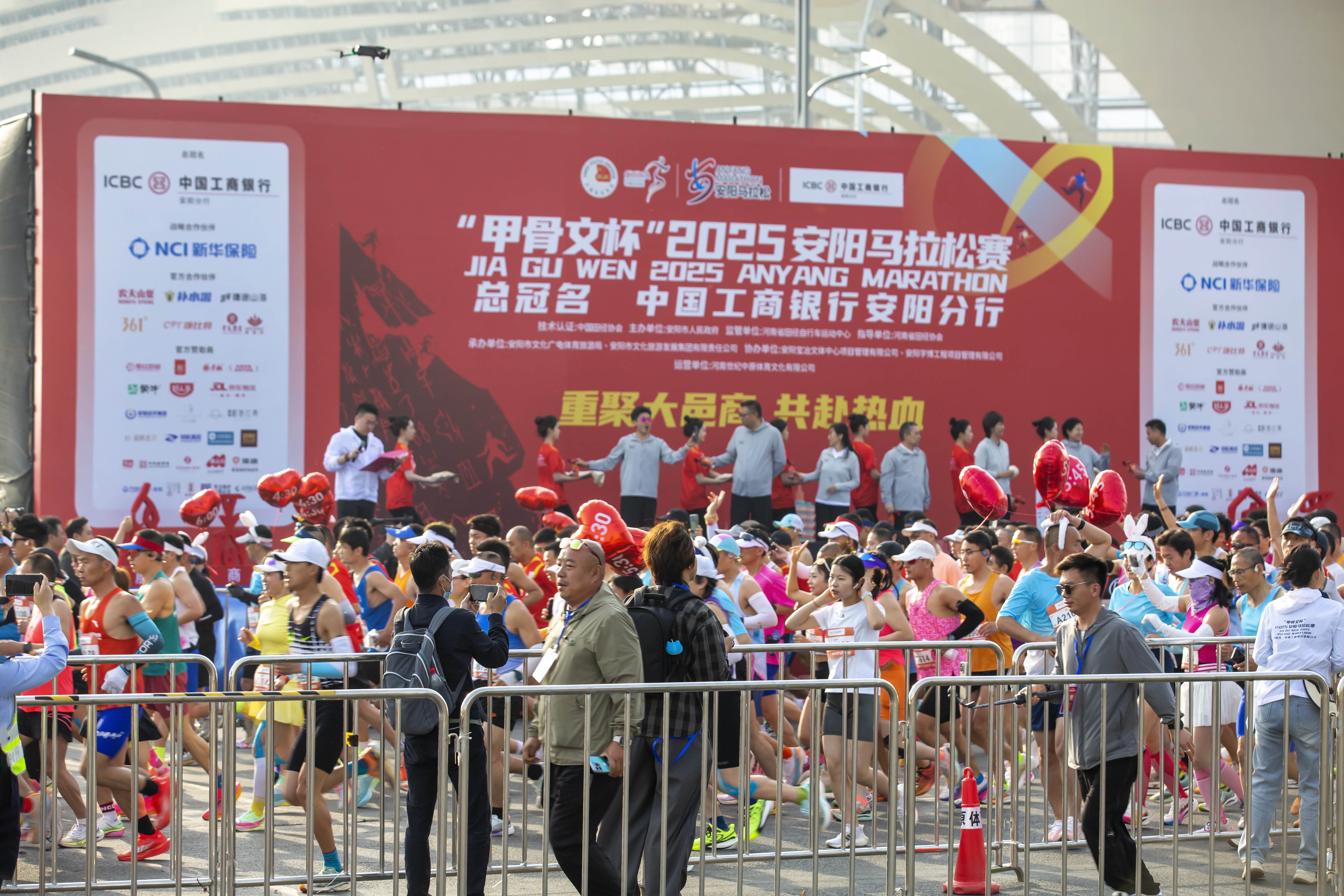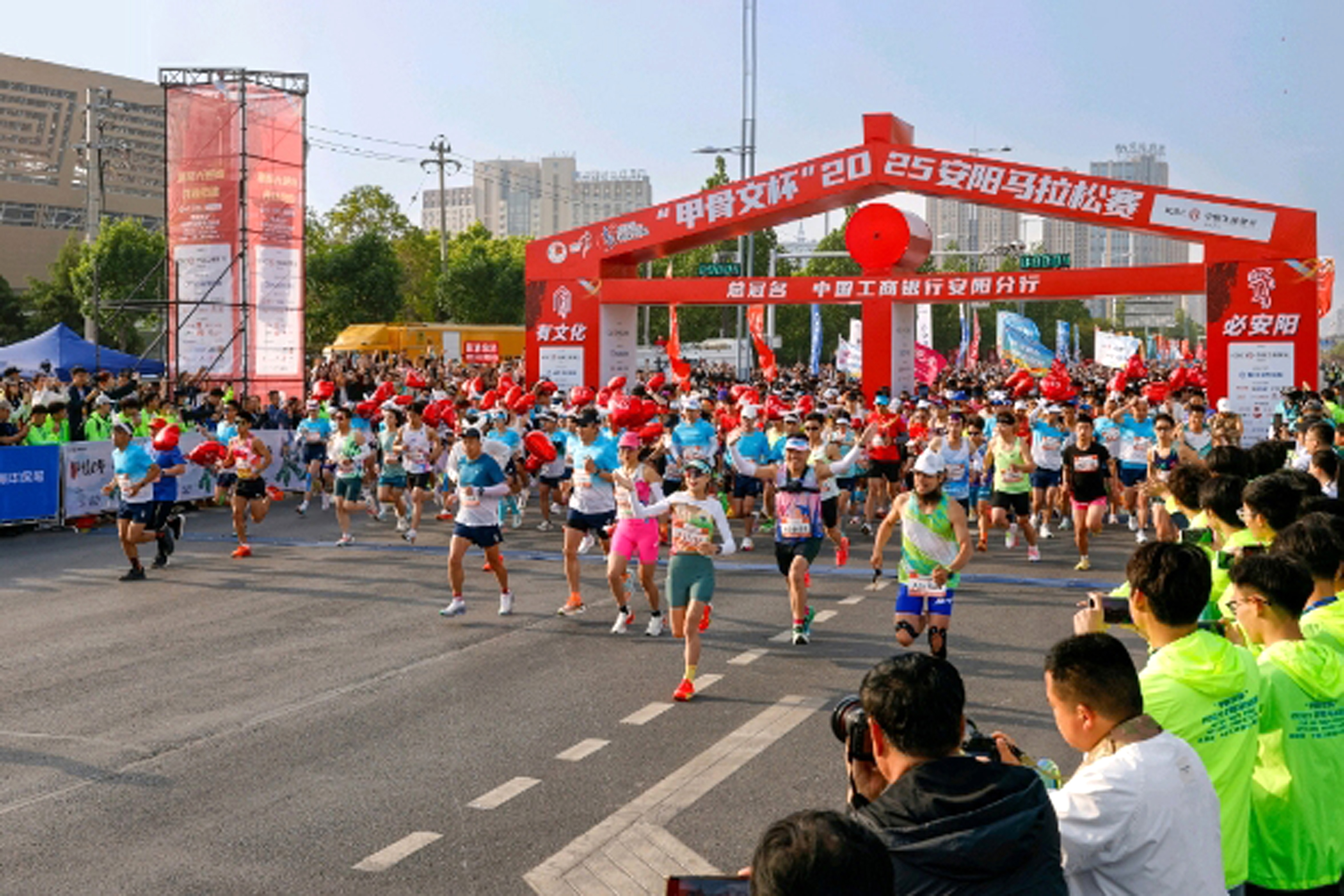 2025年4月26日,中华字都——河南省安阳市举办第二届“甲骨文杯”马拉松比赛。在市文体中心,随着清脆而响亮的“抢鸣”,跑友们就像一群群小燕子飞也似的“冲”了出来。