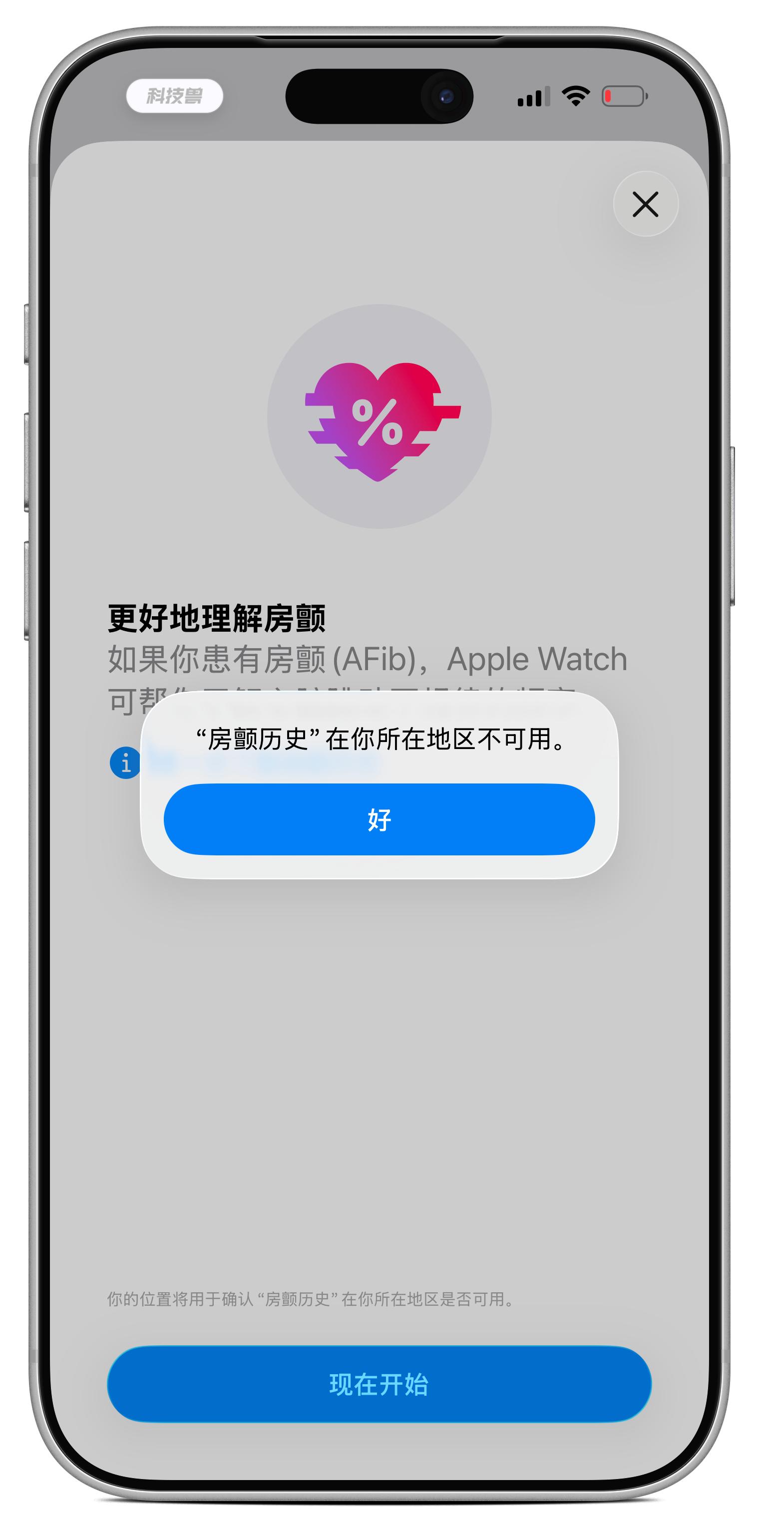 预计苹果会在后续的 iOS / watchOS 26 系统更新中,为国内 Apple Watch 用户开放该功能。目前在 iPhone 的“健康”App 中查看「房颤历史」时,仍会显示“你所在的地区不可用”。