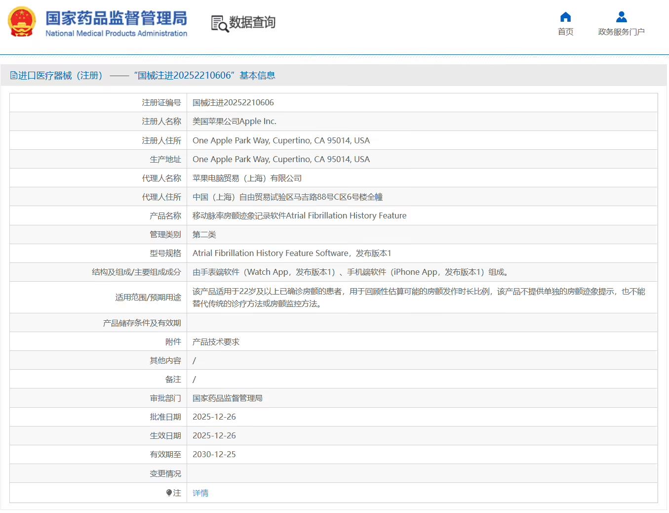 据悉,该功能的注册名称为「移动脉率房颤迹象记录软件」,并已于 2025 年 12 月 26 日正式获批。