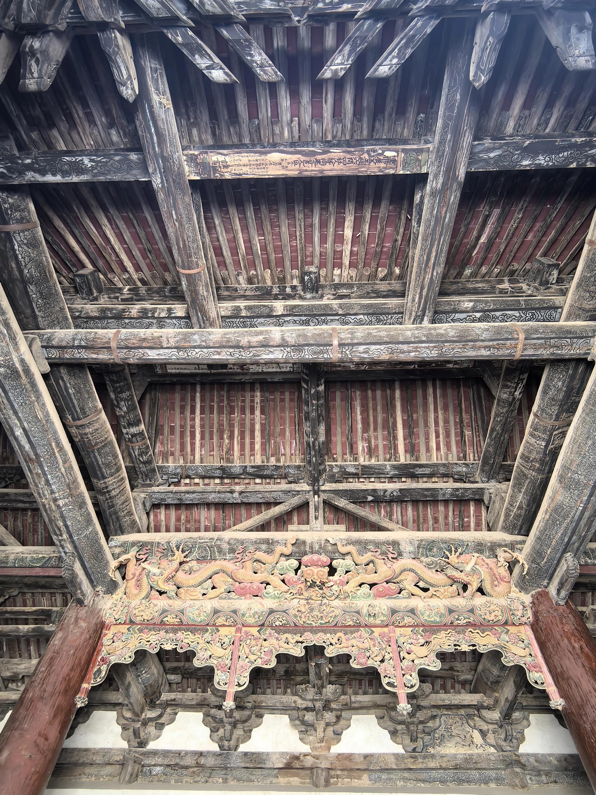 仰头望向屋顶,同样能收获惊喜。琉璃构件在微弱的光线下泛着温润的光泽,正脊上的鸱吻造型夸张,张开的巨口仿佛要吞纳天地;垂脊上的走兽神态各异,有的昂首嘶鸣,有的低头凝视,连毛发、鳞片都雕刻得丝丝分明。这些琉璃制品不仅是建筑装饰,更承载着古人趋吉避凶的美好愿望。在古代,琉璃烧制工艺复杂,能在庙宇屋顶大量使用琉璃构件,足见当年稷益庙的规格之高。