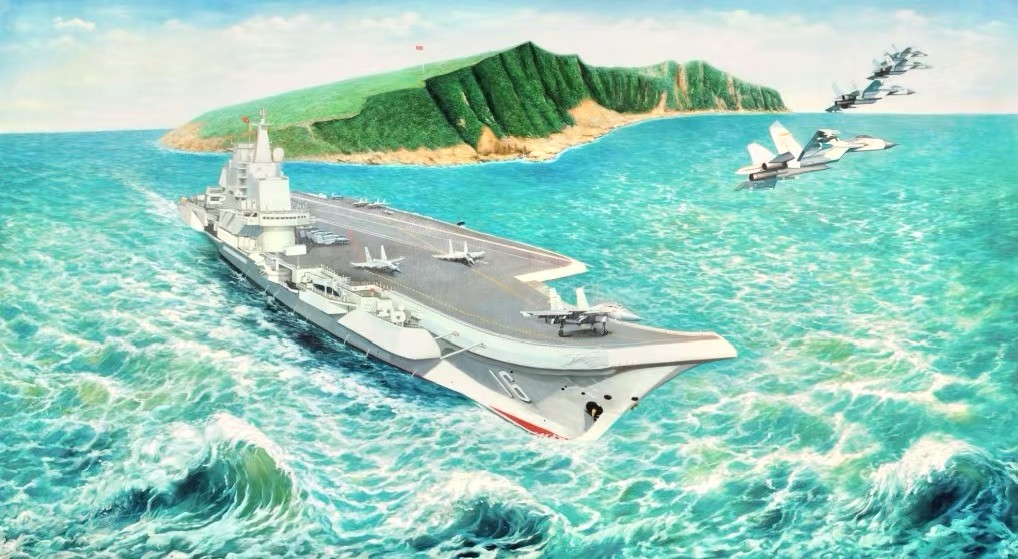 画家薛海涛作为中国第一名美术工作者,用画笔创作了中国历史上第一艘航空母舰“辽宁舰”,这幅以“辽宁舰”保卫祖国广阔海疆、保卫钓鱼岛为主题的写实油画《我的家园》,向中国海军献上最诚挚的祝福:祝福我们的祖国繁荣昌盛!祝福我们的海军更加强大!
