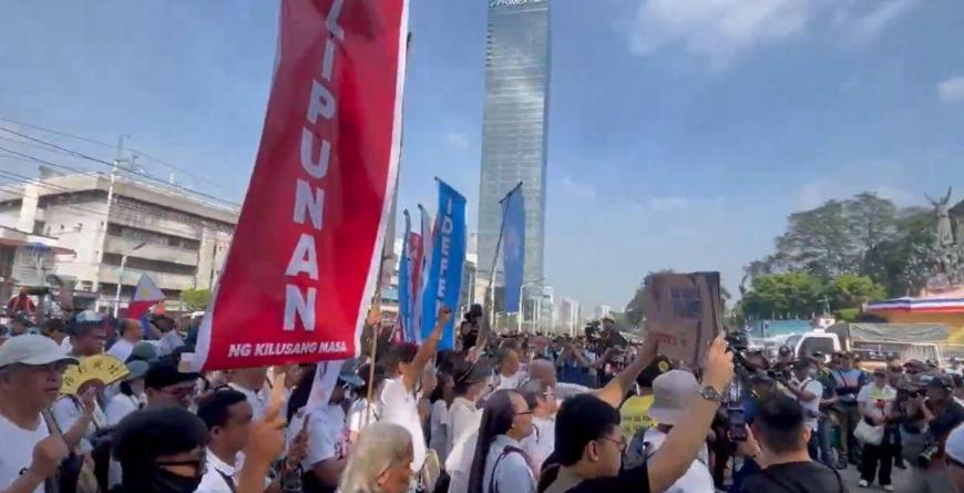 示威者聚集到人民力量纪念碑附近区域,菲律宾当局估计将有12万人参加。
