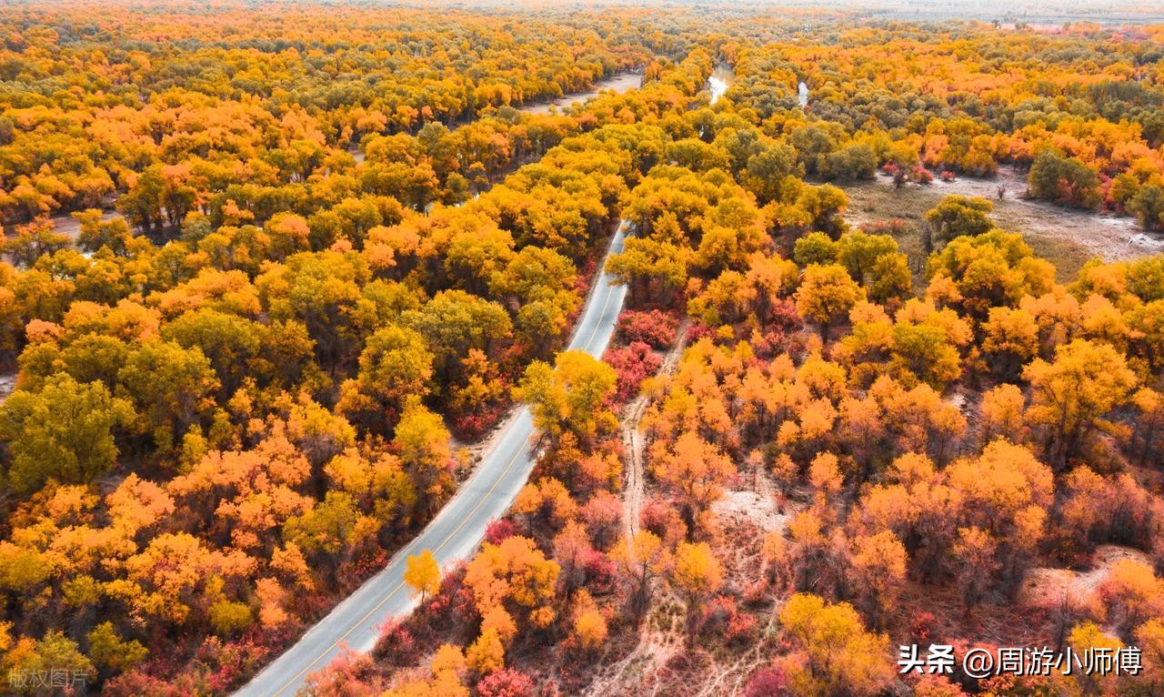 沿着塔里木沙漠公路前行,能看到大片胡杨林在沙漠中顽强生长,金黄的树叶与沙漠相映成趣,彰显生命的坚韧与壮美,10 月至 11 月是观赏的黄金时期