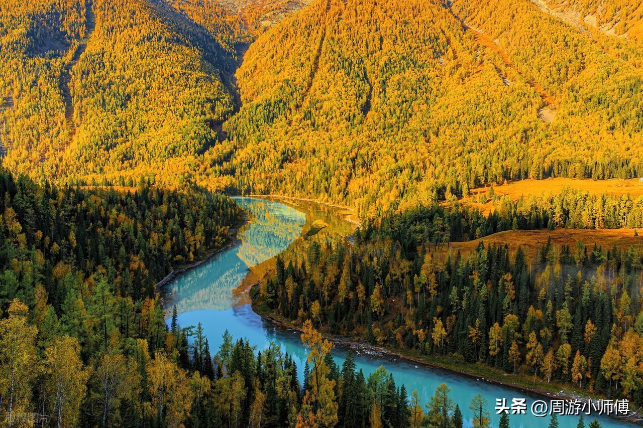 中国国家地理十大秋色之首!从乌鲁木齐出发,经可可托海,抵达禾木,这里清晨的炊烟与晨雾相互交织,仿若仙境。随后前往喀纳斯湖,湖水随光线变幻色彩,周边森林五彩斑斓。