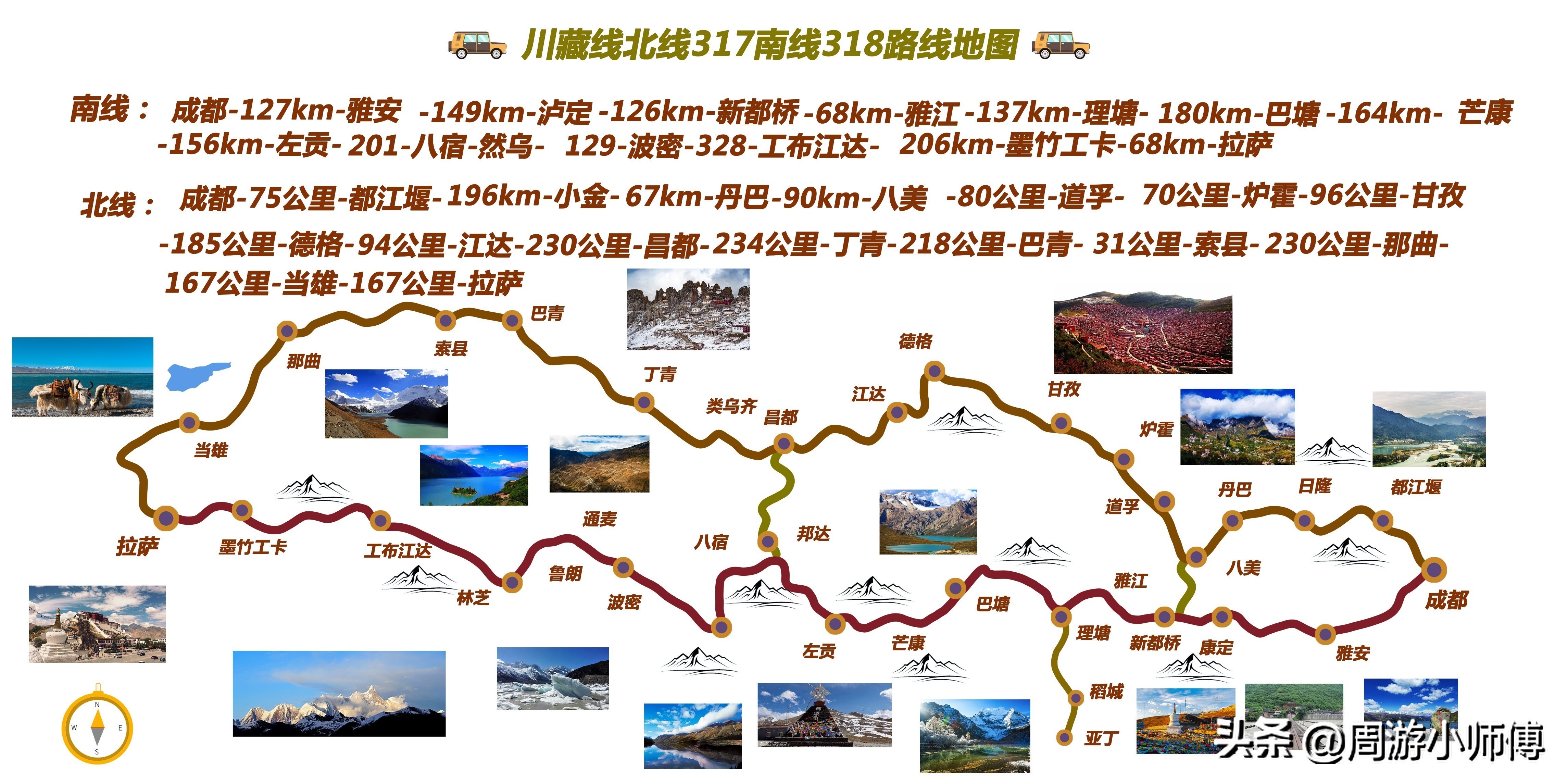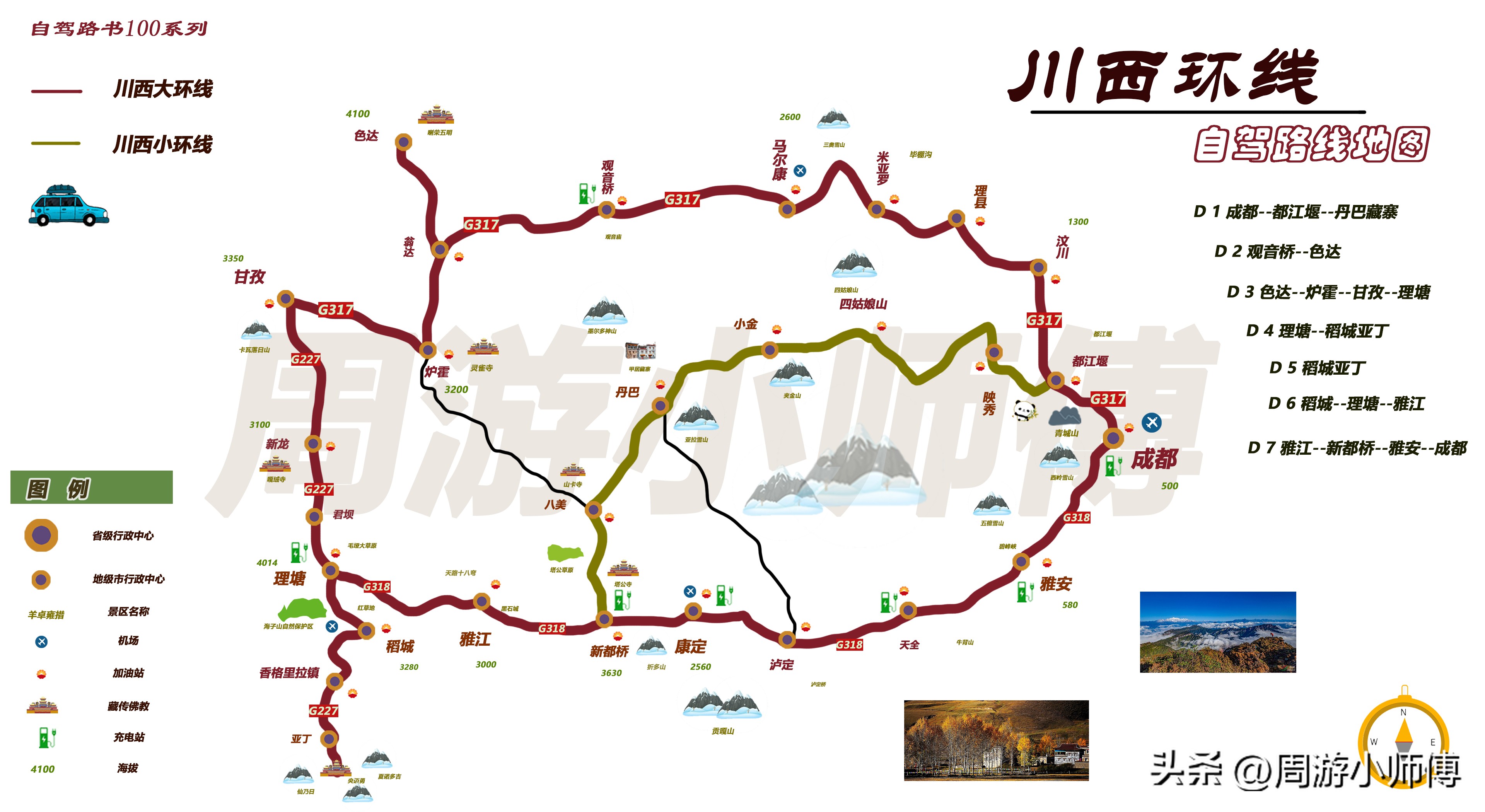 蓝色星球最后净土。从成都启程,途经四姑娘山,四座山峰巍峨壮丽。新都桥是摄影天堂,光影变幻下的草原、溪流美轮美奂。