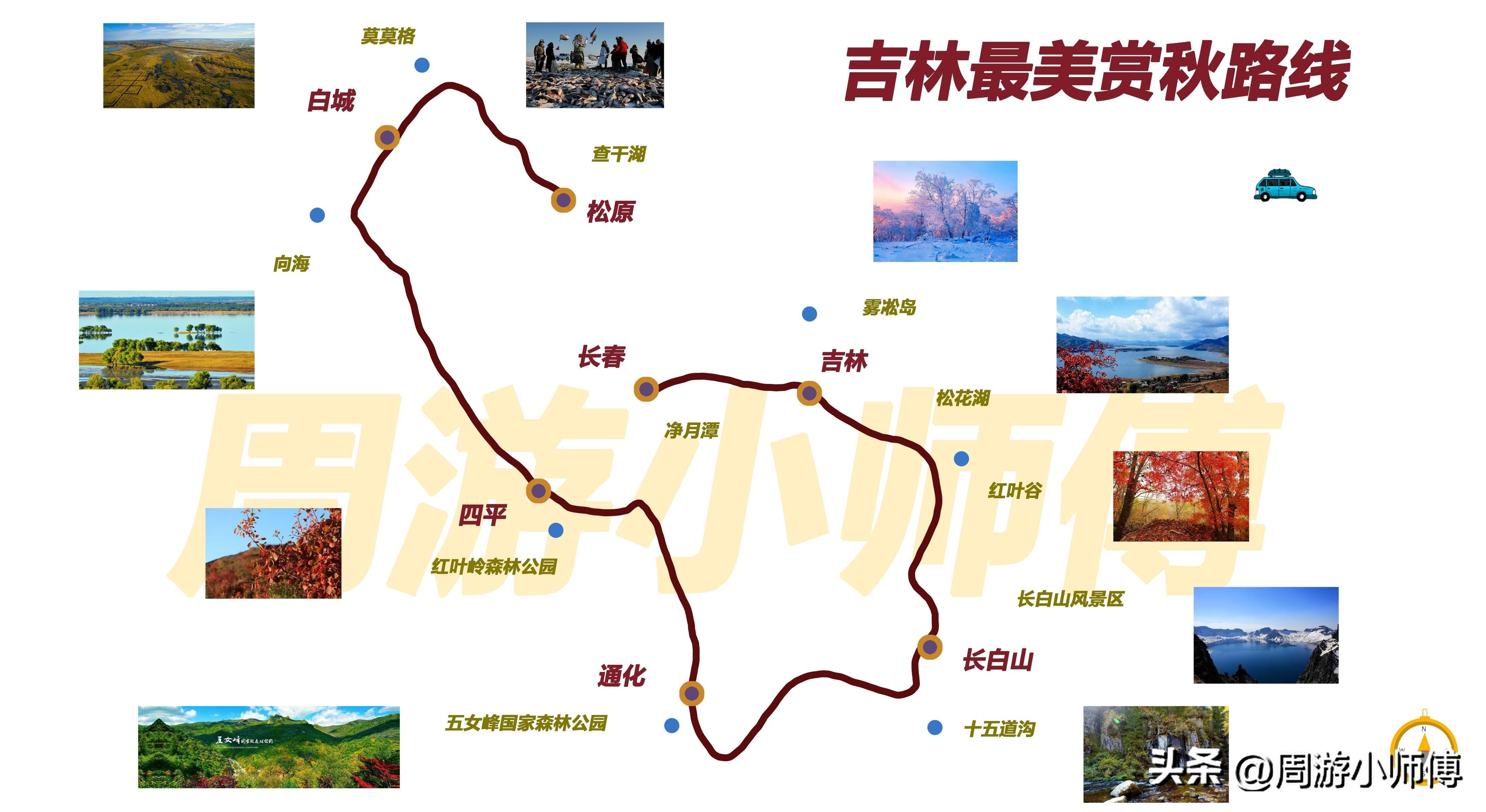 秋季的吉林绚丽多姿。从长春净月潭开始,到吉林雾凇岛虽主要赏雾凇,但秋季也有别样韵味。松花湖宁静优美,红叶谷红叶似火。