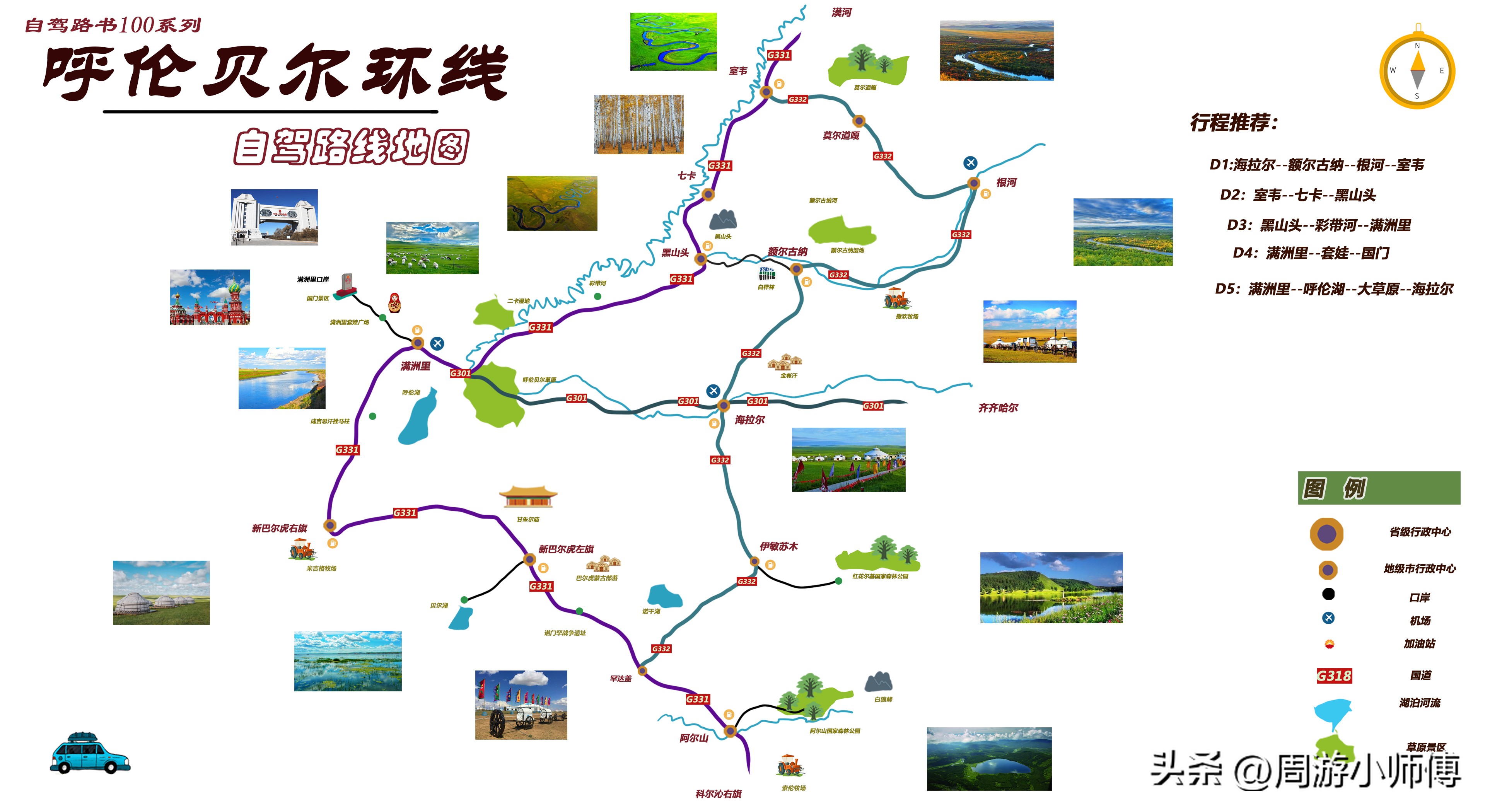拥有火山天池与北欧同款针叶林秋色。从海拉尔出发,经额尔古纳,欣赏草原风光。恩和的白桦林在秋日里洁白挺拔。