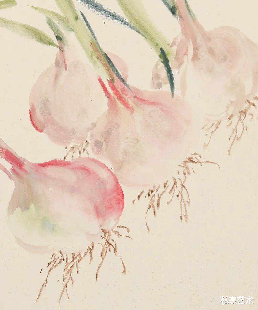 兰花风雅,有君子风。大葱则是必备食材,带着烟火气。我的画中有兰花,也有大葱。我追求精神的脱俗,但也实实在在过着每一天的平凡生活。