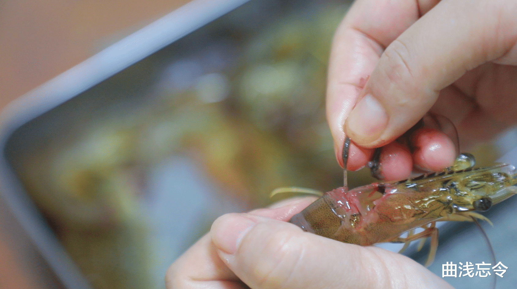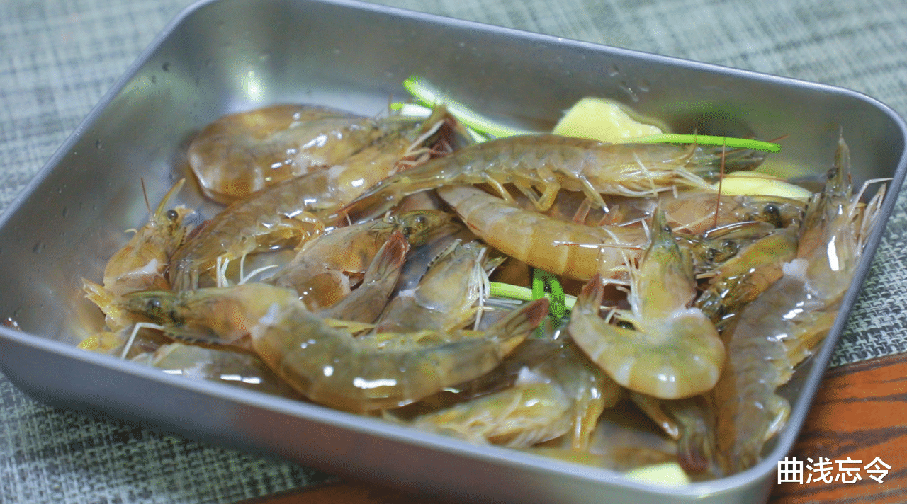1、食材预处理(虾):虾去掉虾胃、虾线,清洗干净,加入葱姜料酒腌制20分钟。再洗净滤干备用。