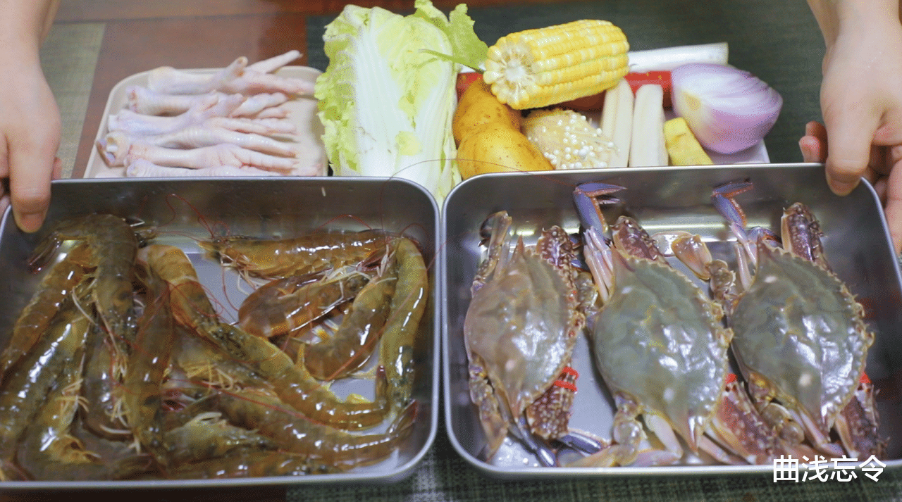 食材:长鸡爪8根、对虾16只、梭子蟹3只;