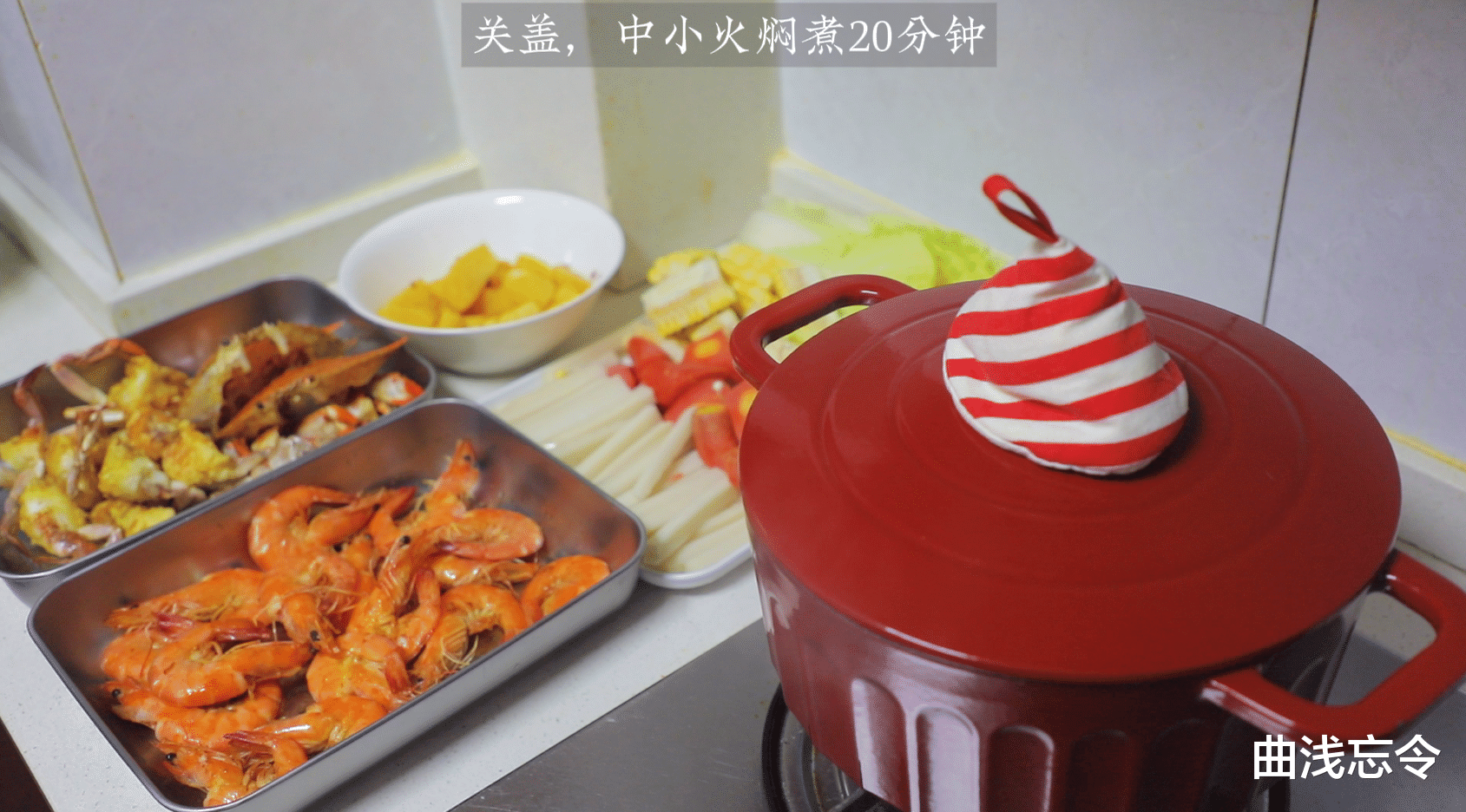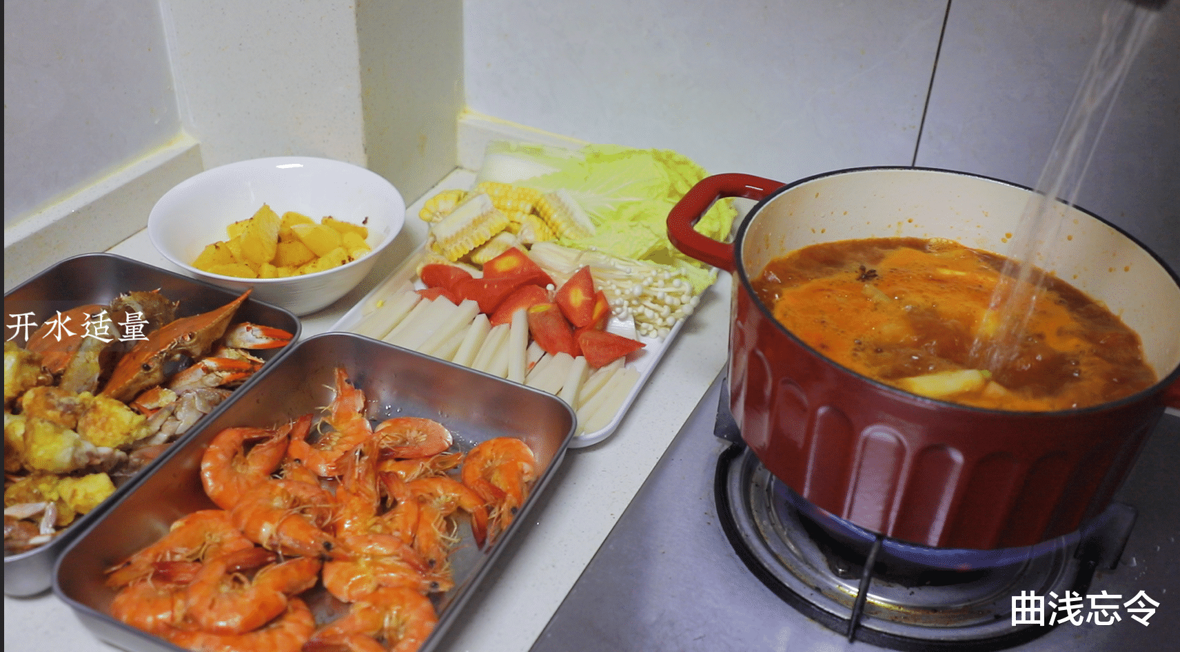 5.食材要根据熟的程度和自己口味喜好来分时段加入,虾蟹建议出锅前十分钟加入即可,不适合煮太久。