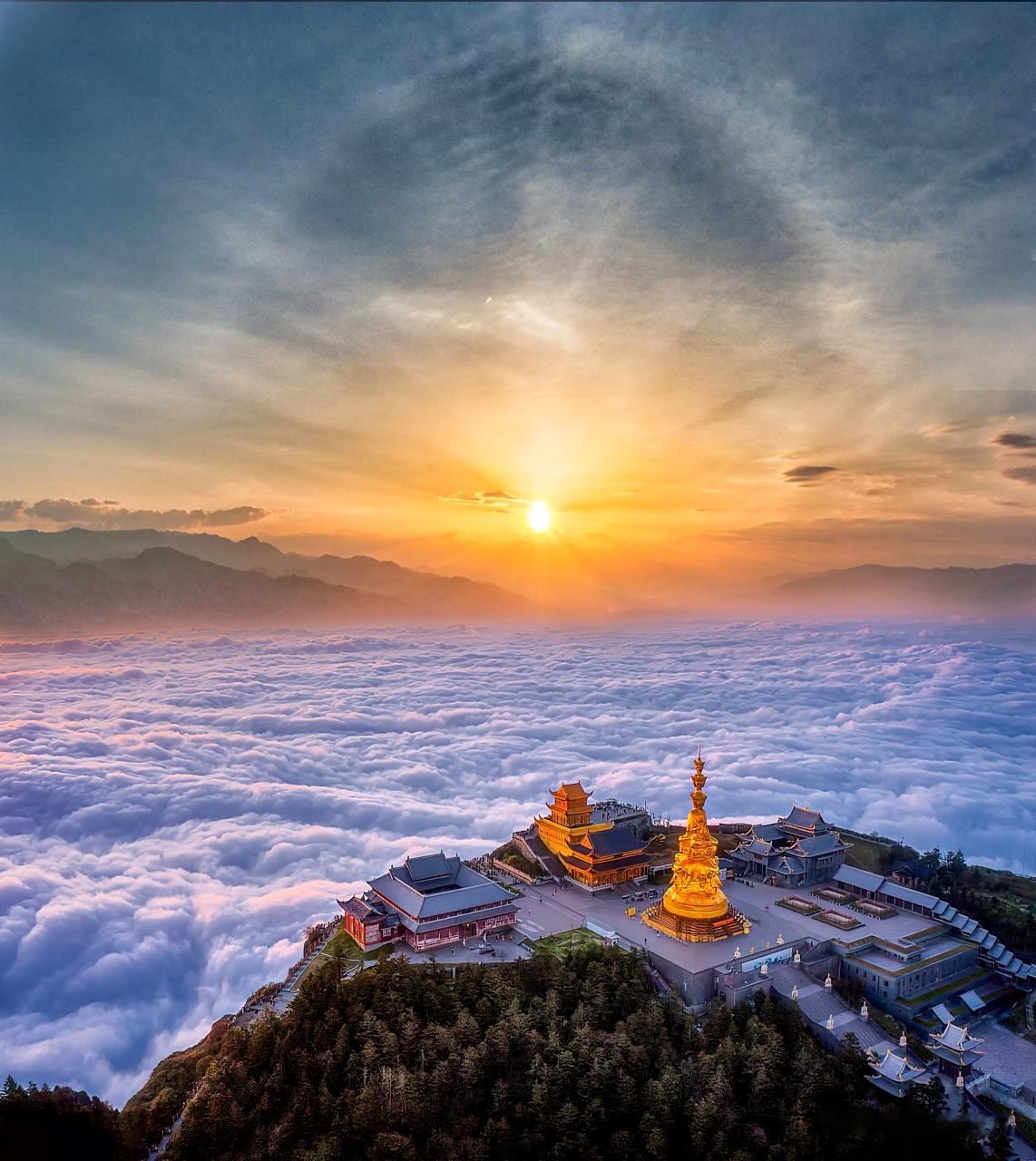 中国四大佛教名山之一,自然风光与佛教文化相得益彰。峨眉山山势雄伟,植被丰富,四季景色各异。山上的古刹梵音袅袅,香烟缭绕,仿佛能洗净人们心灵的尘埃。在金顶之上,你可以看到壮观的日出、云海和佛光等自然奇观,仿佛置身于佛国仙境,感受着宁静与祥和。