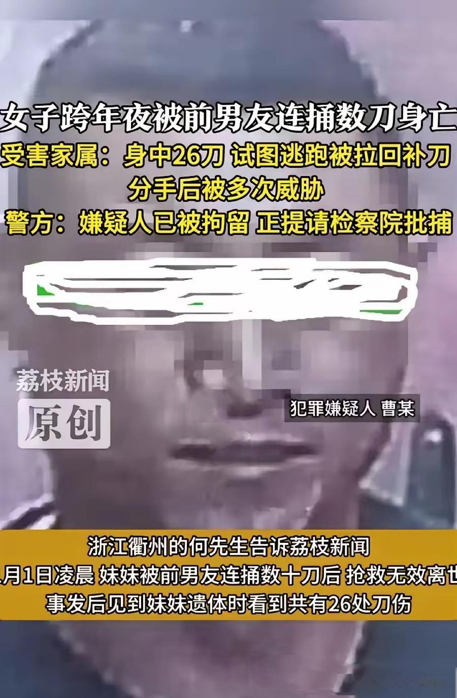 一会儿,曹某追上前女友叶某,多次补刀。何某身中26刀,倒在血泊之中,不幸死亡。