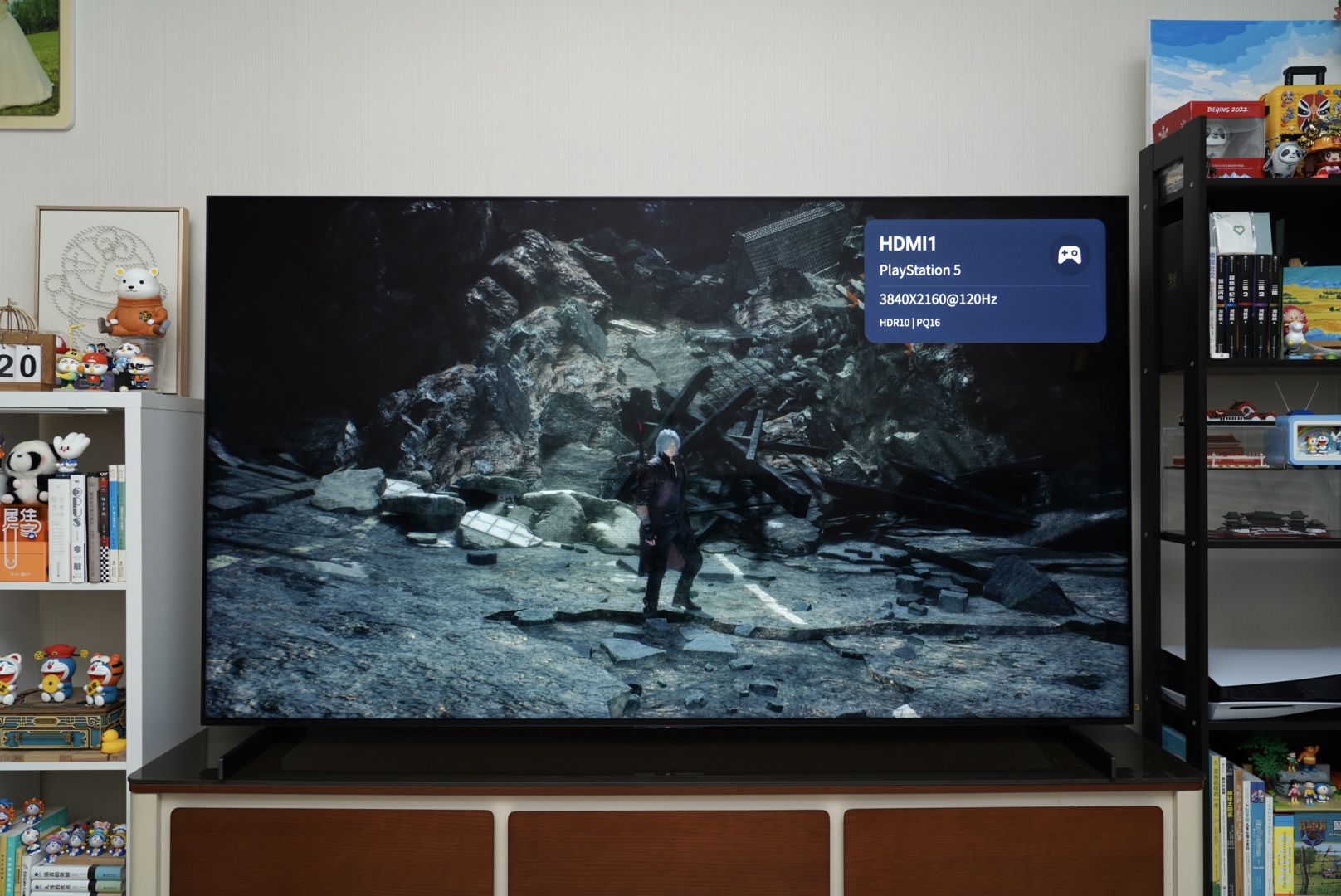 在启动游戏主机之后,画面会自动切换为游戏模式,初次启动游戏主机还能自动适配电视自带的优化系统,玩起来可自定义的程度也更高。在6.2.2 Hi-Fi音响的加持下,甚至在某些游戏里做到听声辨位。