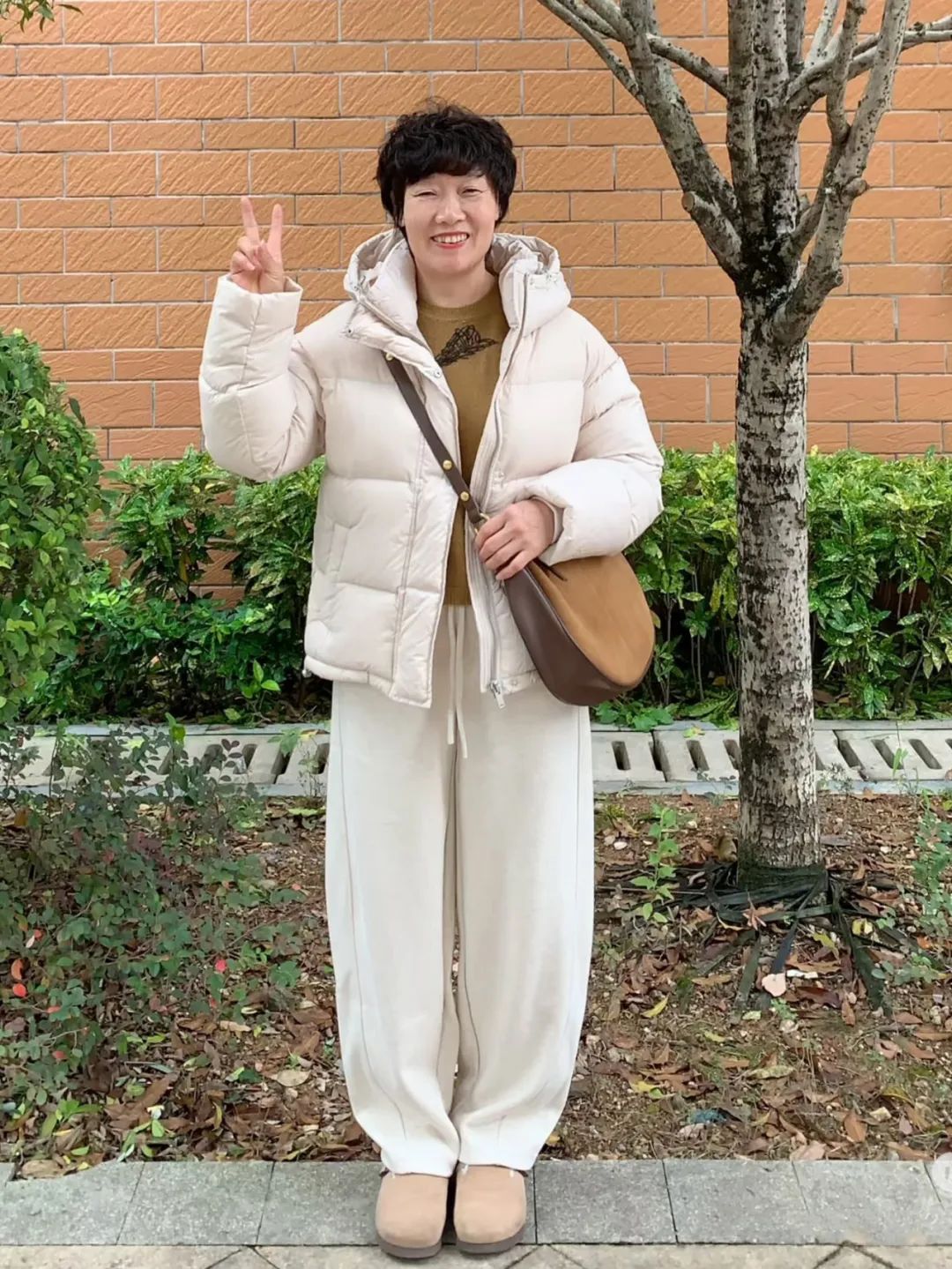 很多60岁阿姨在选择羽绒服时,都容易忽视颜色,或是只穿黑色,实际上这种想法都太过单一。可以尝试一些其它颜色,比如米色、白色、墨绿色等。但需要注意的是,考虑到130斤的体重问题,一定要避免花里胡哨的颜色的羽绒服,比如红色、橘色、荧光色等,容易膨胀视觉更显胖。二、60岁130斤的杭州阿姨,选对裤子也很关键(1)裤不紧身,适当宽松更遮肉