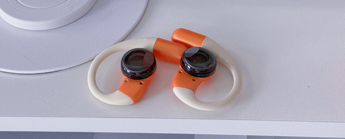 佩戴体验:海豚弧耳挂内涵0.7mm柔软钛合金丝更加兼容大小耳形,搭配超零度硅胶,长期佩戴无压迫感,且运动是不易掉落,佩戴是亲肤柔软的触感