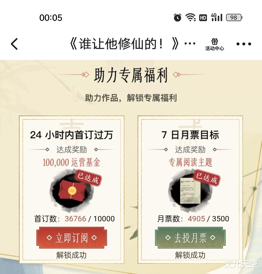 说实话没搞懂起点新书上架闪屏的要求,有些万订书都是没有的,但有些数据并不是很突出的作品就有安排,不知道是不是其中有扶持潜力作者的因素。
